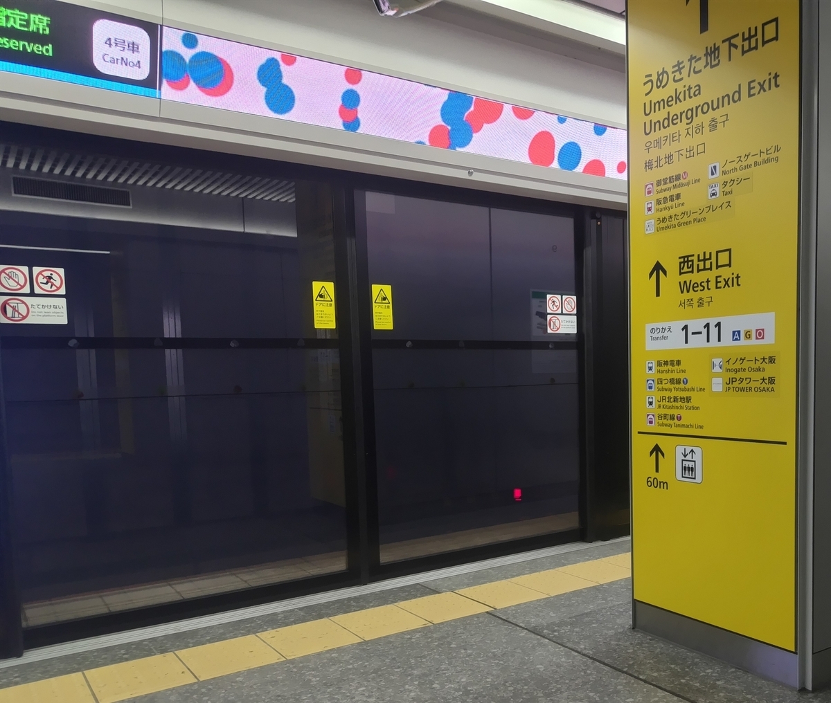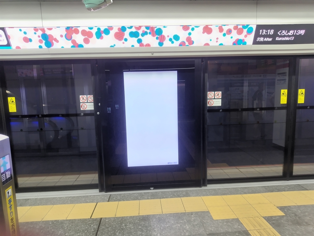 この通称・うめきた地下駅では、日本初の本格的なフルスクリーン型ホームドアを特急“くろしお”専用ホームに採用。如何なる扉の位置にもフル対応するそうな。
